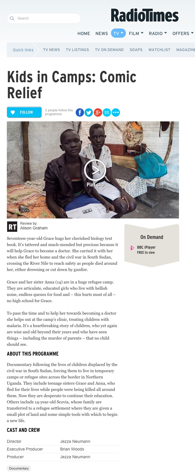 This 1 x 60 special for Comic Relief follows the lives of children living in temporary camps in South Sudan and refugee camps just across the border in Northern Uganda, giving a heart-wrenching and personal glimpse into their lives and telling their inspiring, moving stories through their own words.