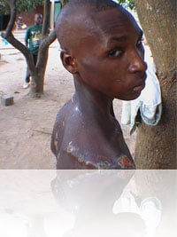 In the cocoa industry of Cote d'Ivoire, Brian and Kate found more slavery. The country produces nearly half the world's supply (over 100 million tonnes) grown on thousands of small plantations - cocoa which finds its way into the newsagents and supermarkets of Britain. The young men are worked up to eighteen hours a day, unpaid and beaten if they try to escape. Kate and Brian interviewed slaves still working in the plantations, as well as a group of young men who had been rescued just days before. One boy, scarred from head to foot from brutal beatings, described how he and other boys were mistreated by their captors, if they attempted escape: "They would tie your hands behind your back. Then one person would beat your front and someone else your back". Kate asks DRISSA an eloquent young man who worked for five and half years in the cocoa plantations what he would like to say to the rest of the world who eat chocolate: "They enjoyed something I suffered to make; I worked hard for them, but saw no benefit. They are eating my flesh".